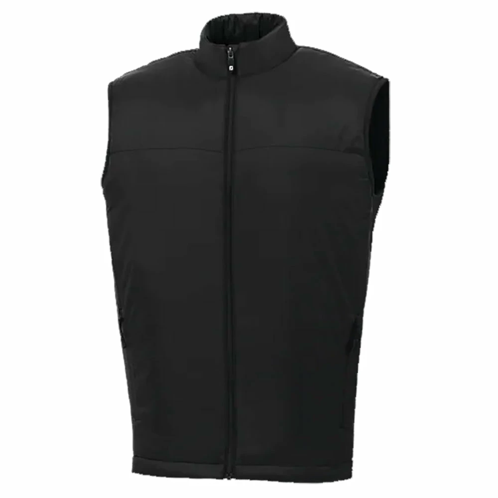 Get warmth during chilly rounds with the FootJoy Insulated Golf Vest. This vest features quilted insulation that will provide warmth to key areas of the body while also providing comfort throughout the round. The full zip construction allows you to easily throw it on or off depending on the temperature.