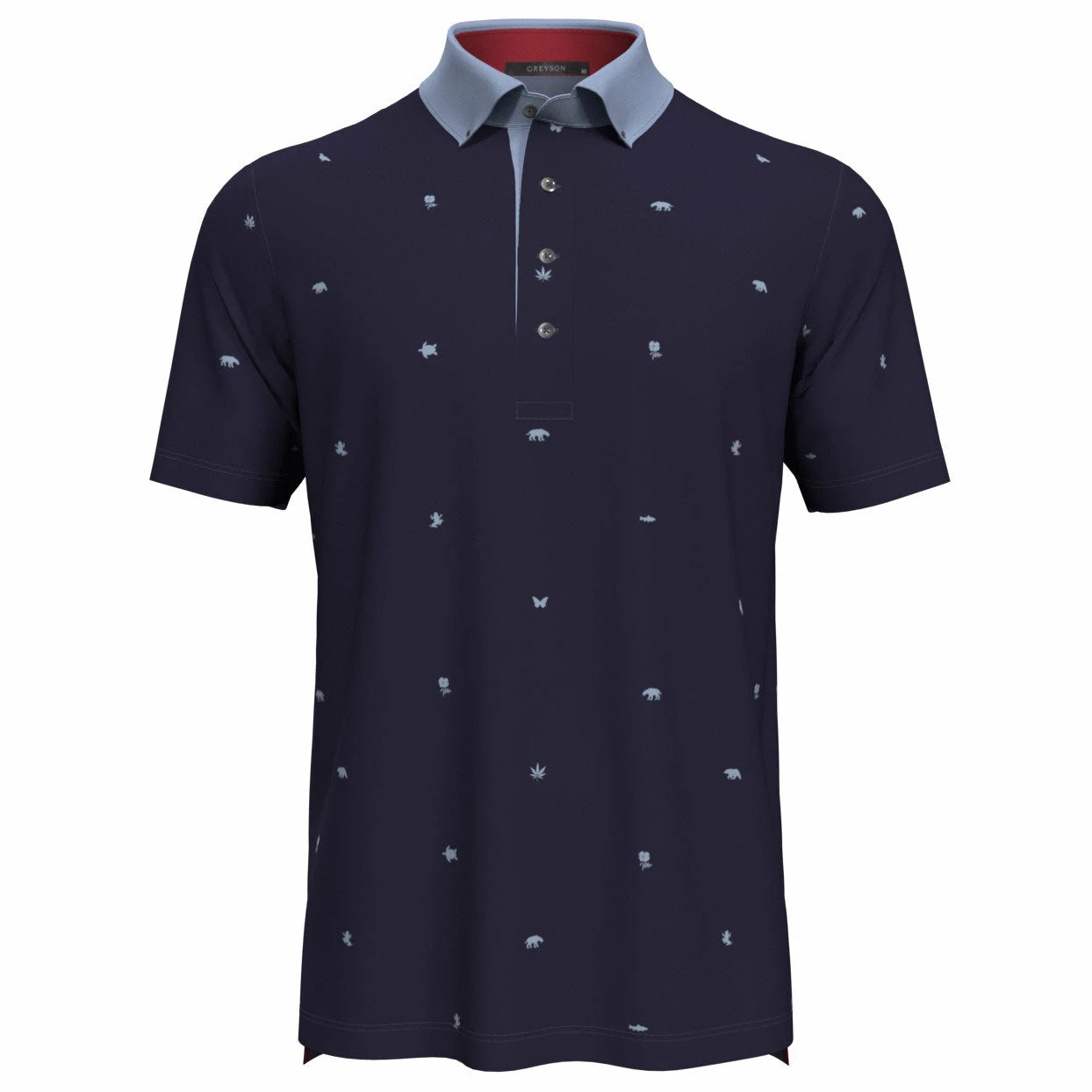 Perfect for the course or a night out comes the Greyson Spirit of Cali Golf Polo. The Spirit of Cali polo is built with an anti-microbial and moisture wicking fabric that will pull sweat from the body to keep you dry, comfortable and smelling fresh throughout the round. The four-way stretch fabric moves through the golf swing for added comfort and UVA/UVB sun protectant keeps you protected from the harmful UV rays of the sun. The contrast collar and stylish print will pair well with shorts or pants to have you looking good on and off the golf course.