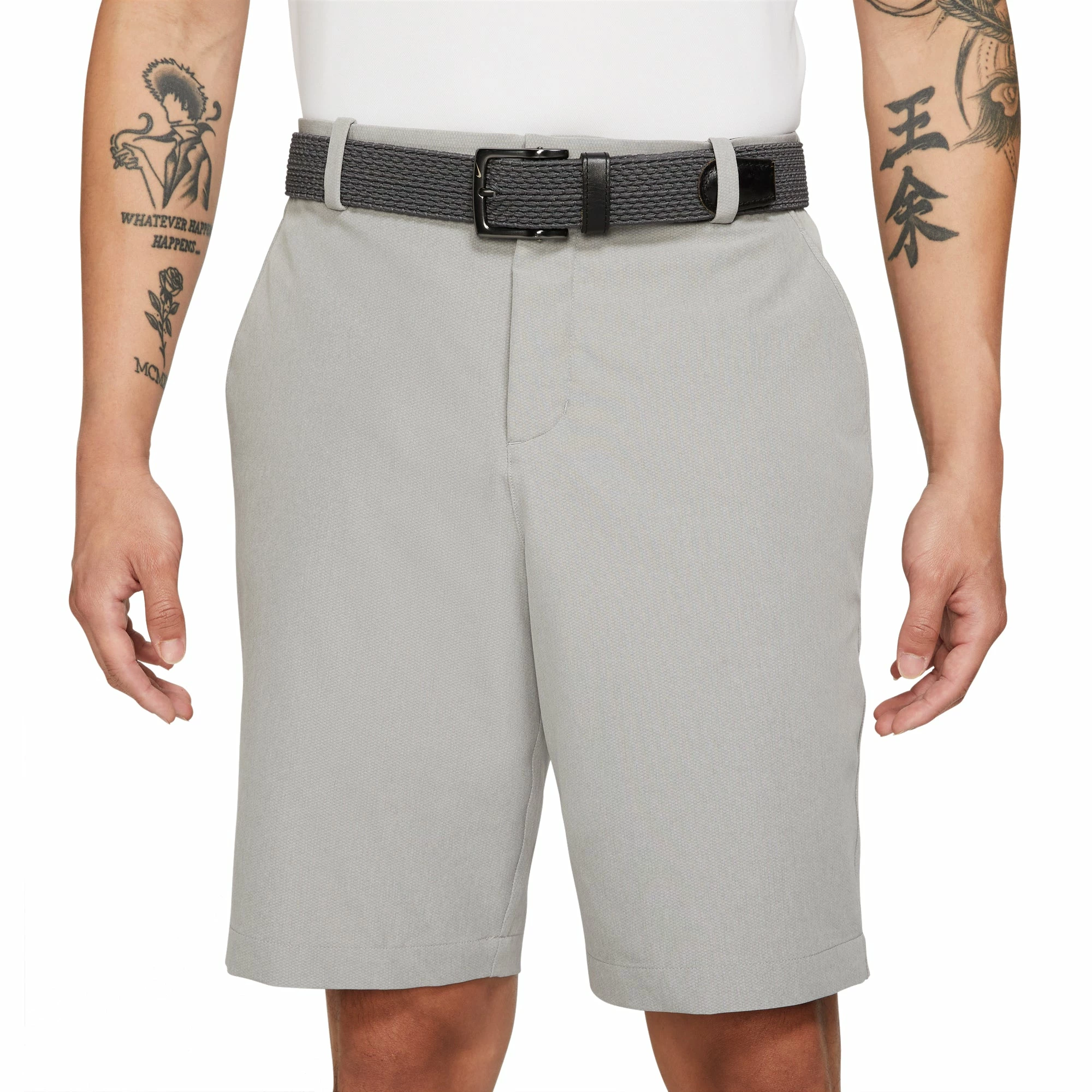 Move with comfort in the Nike Dri-FIT Hybrid Golf Shorts. These shorts are built with a stretchy fabric that features a subtle texture on the inside to keep it from clinging to your body and Nike Dri-FIT technology pulls sweat from the body to keep you dry and comfortable throughout the round. There is a repeating Nike Golf graphic on the inner waistband with a slightly tacky texture to keep your shirt tucked in. A V-notch in the back of the waistband provides more stretch for added comfort.