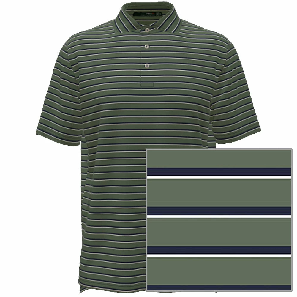 Perfect for on and off the course wear comes with the RLX Featherweight Airflow Jersey Mens Golf Polo. Knitted with the lightest, finest gauge fabric, this polo will wick moisture so you stay dry and offer full range stretch comfort so you can swing with ease. It features a three button placket, all over variegated stripes for an added touch of style, and an updated undercollar interfacing for more structure.