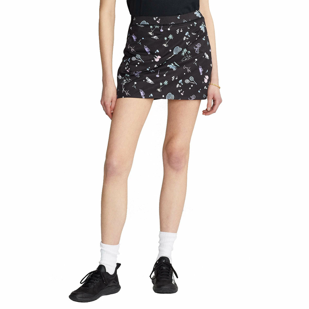 Add a pop of color to your golf wardrobe when you step into the RLX Ralph Lauren Printed Aim 15in Womens Golf Skort. This skort is cut from a stretch fabric for ease of movement and features moisture wicking properties to keep you dry during your round. The sporty silhouette is enhanced with back pleats and two front angled pockets that are perfect for storing your small golf essentials.